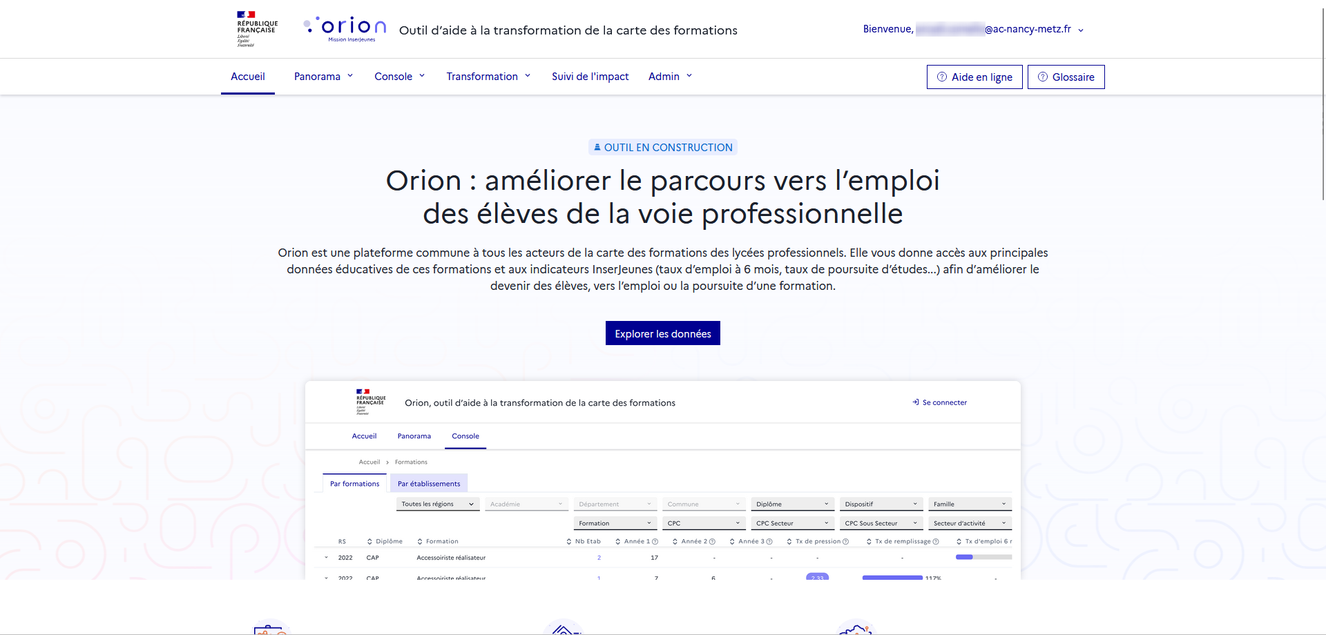 Voici un aperçu du menu principal d’Orion dans sa version connectée :