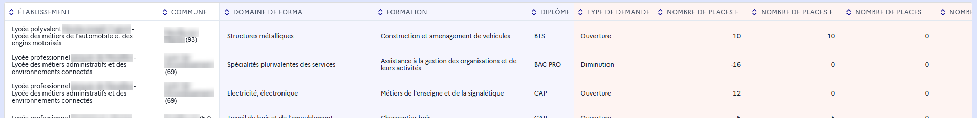 Les compteurs de places transformées donnent une vue synthétique des transformations prévues, par type de demande et par voie, tous statuts de demandes confondus, y compris propositions, projets, etc. à l’exception des demandes déjà refusées.